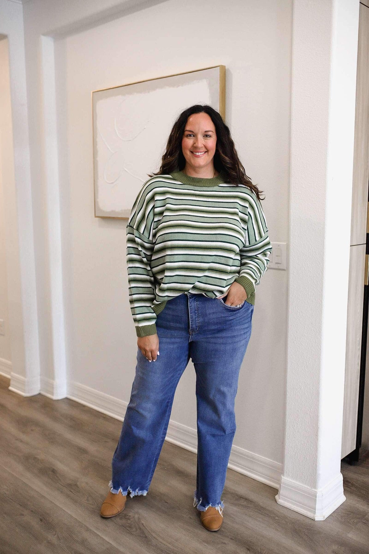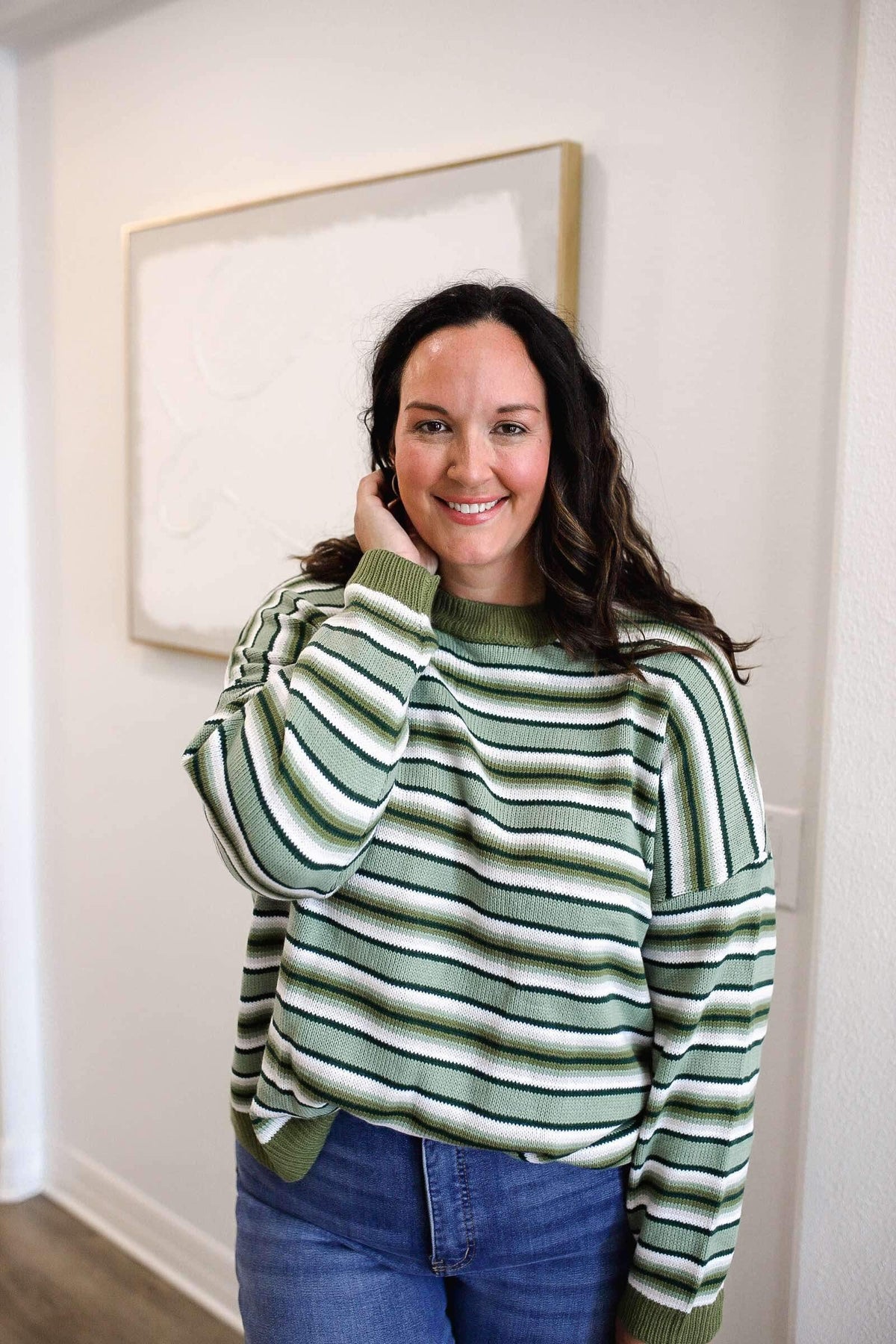 Get cozy and stylish with our Striped Mock Neck Long Sleeve Sweater! This sweater features a playful striped design and a comfortable mock neck. Perfect for any casual occasion, stay warm and on-trend with this must-have piece. The models are in the medium and 2X.